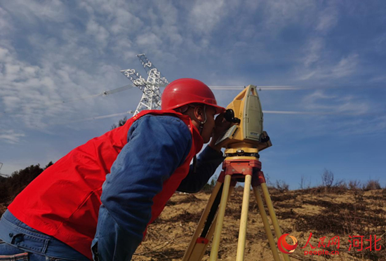 河北送變電公司作業(yè)人員細致勘測。 程冰峰攝