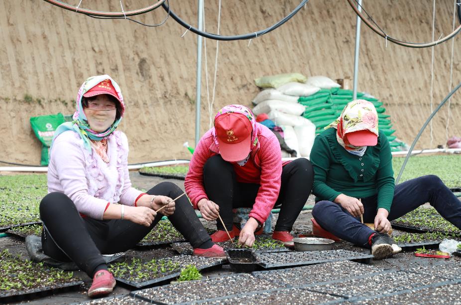 “這是剛長成的辣椒苗,我們抓緊時間把它們移植到育苗盤里,一坑兒一苗兒?!闭谑炀氉龉さ?6歲村民薛愛說,“節(jié)令不等人,從3月初開始張羅營養(yǎng)土配比,然后播種、澆水、移植和管護,到5月中旬進入銷售高峰,我們就一直在這里忙?!?/p>