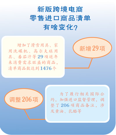 “新版清單增加了番茄汁、家用洗碟機(jī)等29項(xiàng)商品稅目,以及貓砂、足貼等產(chǎn)品,體現(xiàn)了清單內(nèi)容的民生指向?!敝袊?guó)政法大學(xué)民商經(jīng)濟(jì)法學(xué)院講師鄭伊說,“這些都是近年來消費(fèi)需求旺盛的日常用品,納入清單之后,百姓可以通過跨境電商購(gòu)買相關(guān)進(jìn)口產(chǎn)品,價(jià)格也會(huì)相應(yīng)地有所下降,有利于滿足消費(fèi)升級(jí)需求。”