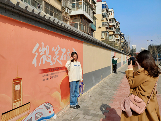 “微笑墻”繪畫引市民圍觀。 石家莊網(wǎng)信辦供圖