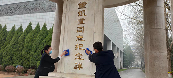 擦拭董振堂紀(jì)念碑。 如月攝