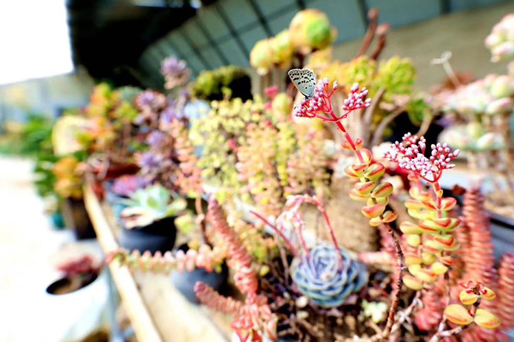 “目前我們基地投資建設的6個農業(yè)溫室大棚,占地面積6700平方米,可售多肉品種達170余種,春秋兩季是多肉植物生長最旺盛的季節(jié),溫差大,且顏色鮮艷。目前,我們的主要工作就是對多肉植物進行繁殖,根據植物種類的不同,繁殖的方法主要有播種繁殖、扦插繁殖、分株繁殖以及嫁接繁殖?!倍嗳饣刎撠熑寺沸闳A介紹說。