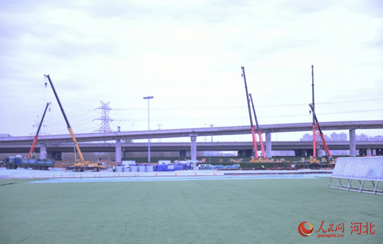走進石家莊高鐵商務(wù)區(qū)施工現(xiàn)場,挖掘機正在施工,重型卡車來回穿梭,工地上一派繁忙。干凈整潔的甬道、出具規(guī)模的網(wǎng)球場、籃球場,滿眼綠樹紅花。而在去年8月之前,這里還是低矮破舊,私搭亂建、基礎(chǔ)設(shè)施老化的舊市場。僅僅過了半年,高鐵商務(wù)區(qū)中央綠色體育公園初具規(guī)模,石家莊的“城市客廳”雛形已現(xiàn)。