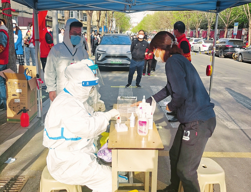 4月11日,省城迎澤區(qū)進(jìn)行居民核酸采樣。青年路小學(xué)教育集團(tuán)首批50名教師志愿者分別到迎澤區(qū)六個社區(qū)服務(wù)集合地點(diǎn)開展核酸檢測志愿服務(wù)。他們用行動詮釋了在非常時期的使命與擔(dān)當(dāng)。(記者王瑞瑞攝)