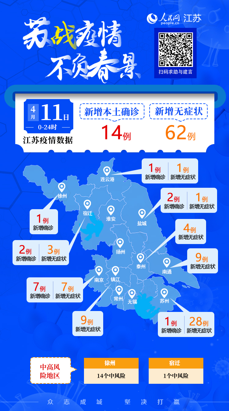 4月11日江蘇新增本土確診病例14例 本土無癥狀感染者62例