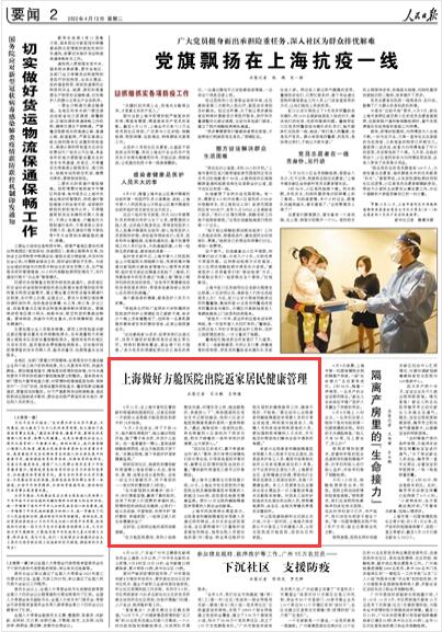 人民日報(bào):上海做好方艙醫(yī)院出院返家居民健康管理