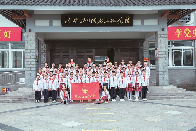 如今,歷史交由新時(shí)代的青少年來(lái)書(shū)寫(xiě)。作為新安旅行團(tuán)的母校,新安小學(xué)學(xué)生們?cè)诙δ咳局行纬勺约旱木褡鴺?biāo)。學(xué)校不僅成立新旅藝術(shù)團(tuán)、紅領(lǐng)巾新旅研究院、教師新旅研學(xué)中心,深入挖掘和學(xué)習(xí)新旅紅色文化,還定期組織“小好漢”宣講員深入班級(jí)、家庭、社區(qū)、鄉(xiāng)村,廣泛宣講新旅故事。