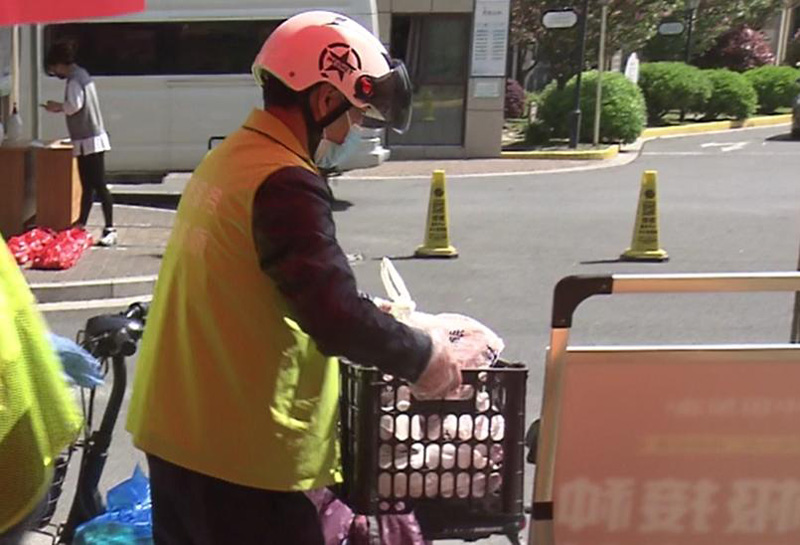 在玉麟名邸小區(qū),前一天晚上居民們通過居委訂購的蔬菜和肉類食品今天上午已經(jīng)抵達(dá)各暫存點(diǎn)位,陸續(xù)有居民接到通知前來取貨。除了蔬菜肉類食品,在昨天城橋鎮(zhèn)公布的生活物資保供指南中,還增設(shè)了米、油、調(diào)味料、衛(wèi)生用品等套餐,由各村居根據(jù)各自實(shí)際情況組織集中代購和分發(fā)?!靶^(qū)居民錯(cuò)峰分時(shí)領(lǐng)取,開放式的老街小巷,我們安排每戶送上門?!倍帕柙平榻B。