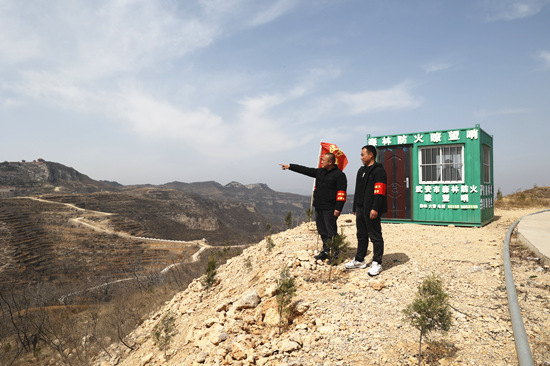 3月23日,武安市防火巡視人員正在查看防護區(qū)。李樹鋒攝