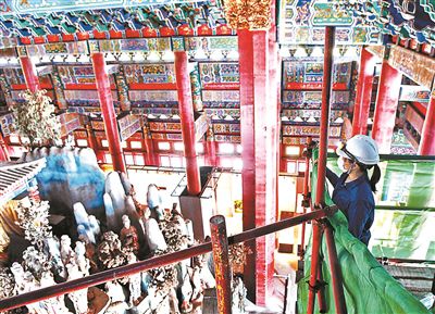 目前,北海公園小西天景區(qū)已暫停開放,進(jìn)行結(jié)構(gòu)安全鑒定。北京青年報(bào)記者了解到,這是北海公園首次針對(duì)古建筑的結(jié)構(gòu)安全性進(jìn)行全面“體檢”,為今后制定修繕方案奠定基礎(chǔ)。據(jù)悉,在不影響正常游覽的情況下,小西天建筑群將于“五一”假期恢復(fù)對(duì)公眾開放。 攝影/本報(bào)記者 郝羿