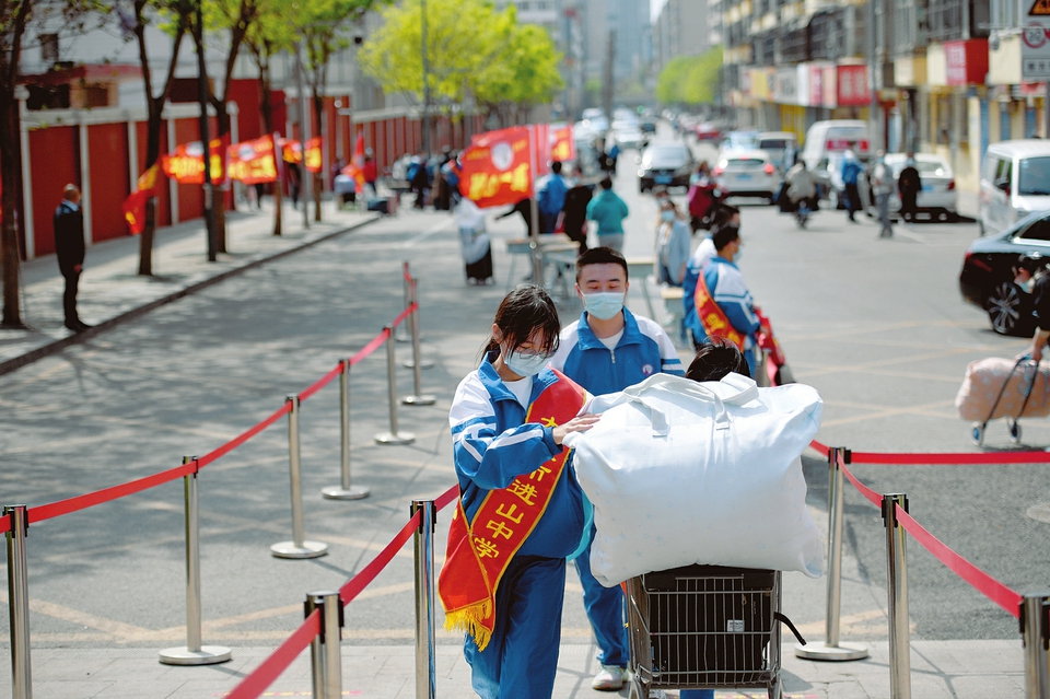 4月20日,太原市進(jìn)山中學(xué)高三學(xué)生陸續(xù)返校報(bào)到,為回校復(fù)課做準(zhǔn)備。據(jù)了解,省城各中學(xué)高三年級21日封閉式復(fù)課,復(fù)課后,師生員工和服務(wù)管理人員將實(shí)行全封閉管理。(記者阮洋攝)