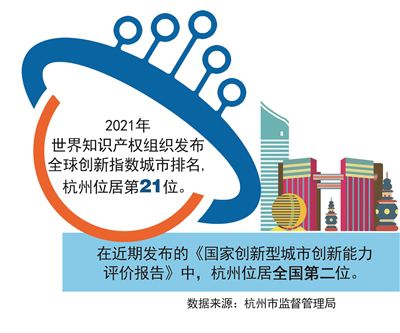 2021年以來(lái),杭州知識(shí)產(chǎn)權(quán)工作堅(jiān)持以數(shù)字化改革為引領(lǐng),以推動(dòng)高質(zhì)量發(fā)展為目標(biāo),著力完善體系,持續(xù)協(xié)同發(fā)力,為高質(zhì)量發(fā)展建設(shè)共同富裕示范區(qū)城市范例提供了有力支撐。截至2021年底,杭州市有效發(fā)明專利擁有量9.5萬(wàn)件,居全國(guó)省會(huì)城市第一,其中,高價(jià)值發(fā)明專利39842件,占比41.9%;杭州市有效注冊(cè)商標(biāo)102.56萬(wàn)件,居全國(guó)省會(huì)城市第二;2021年浙江省設(shè)區(qū)市知識(shí)產(chǎn)權(quán)保護(hù)工作考核優(yōu)秀,位居第一;2021年世界知識(shí)產(chǎn)權(quán)組織發(fā)布全球創(chuàng)新指數(shù)城市排名,杭州位居第21位;在近期發(fā)布的《國(guó)家創(chuàng)新型城市創(chuàng)新能力評(píng)價(jià)報(bào)告》中,杭州位居全國(guó)第二位。