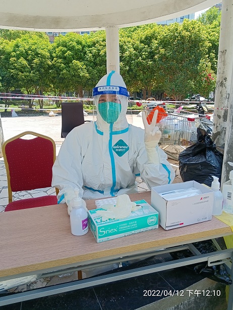 3月以來,上海疫情防控形勢嚴(yán)峻。來自同濟(jì)大學(xué)附屬東方醫(yī)院的護(hù)士姜蕾蕾在完成科室內(nèi)本職工作外,還積極報(bào)名參與醫(yī)院組織的外出采核工作。從4月3日開始,她便駐扎在浦東陸家嘴街道,負(fù)責(zé)各社區(qū)的核酸大篩查與掃樓任務(wù)。已半個(gè)多月沒有回自己的浦東小家陪陪丈夫與孩子的她,更別提回老家江蘇探望家人朋友們了。