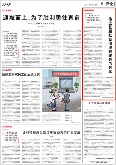 人民日報“現(xiàn)場評論”:推進(jìn)基層社會治理共建共治共享