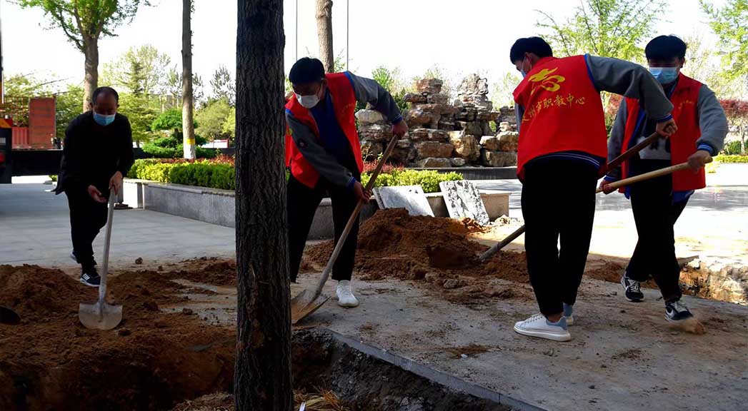種樹就是種幸福,愛樹就是愛子孫。4月15日,市職教中心主教學樓前人頭攢動,學校黨總支書記么柱利、常務副校長劉紅芹與閆怡凡、陳柯安等10余名同學栽下一棵棵銀杏樹,共同收獲勞動的喜悅。