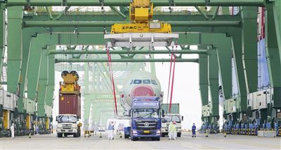 天津港“零缺陷”接卸第600架次空客飛機(jī)大部件