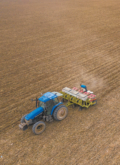 新疆維吾爾自治區(qū)博樂市6萬畝“免耕玉米”開播?!懊飧衩住辈皇褂玫啬ぃ淮涡酝瓿刹シN、施肥、滴灌帶淺埋機械化作業(yè),可減少白色污染等。