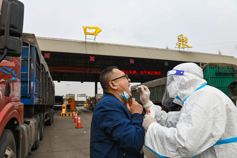 高速路口,保證物資流通的同時,落實防疫要求,做到應(yīng)檢盡檢,不漏一人一車。張占兵 攝