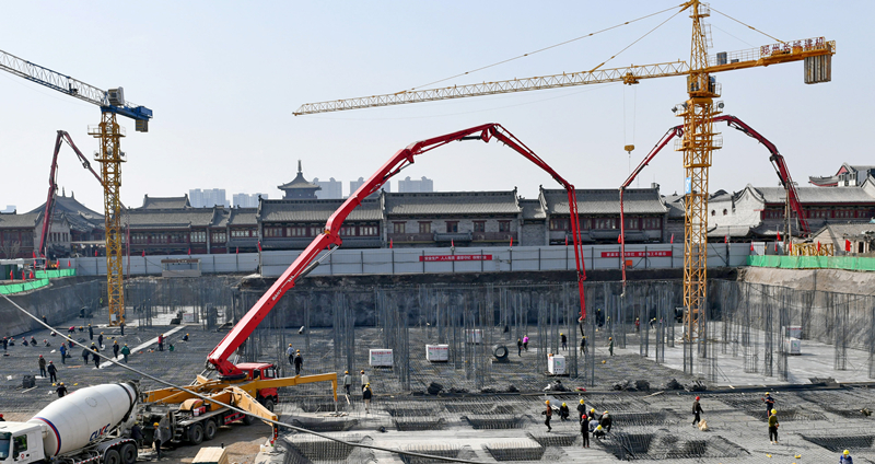 4月10日,大同古城戶部角綜合文旅項目工地上,機(jī)器轟鳴。大同市統(tǒng)籌經(jīng)濟(jì)社會發(fā)展和疫情防控工作,在落實各項防疫措施的同時,復(fù)工復(fù)產(chǎn)也在緊張進(jìn)行中。李冬賓 攝