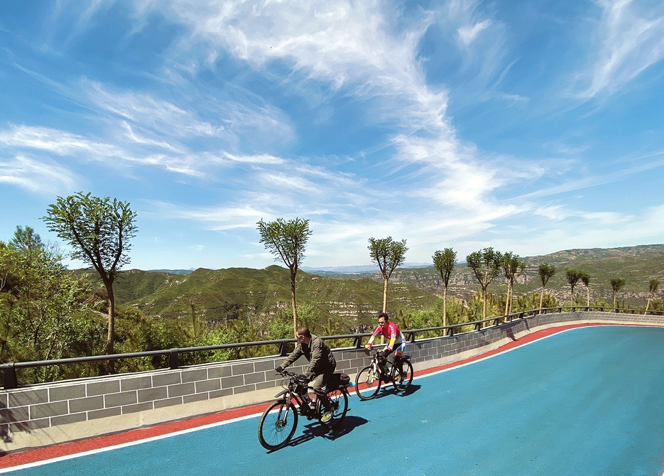 5月5日,騎行愛好者精神煥發(fā)地騎行在太原西山自行車賽道上。自太原市環(huán)城公路自行車賽道建成以來,這條高標(biāo)準(zhǔn)公路就成為眾多騎行愛好者的健身“長廊”,并帶動越來越多的人加入到綠色健身的隊(duì)伍。(記者李兆民攝)