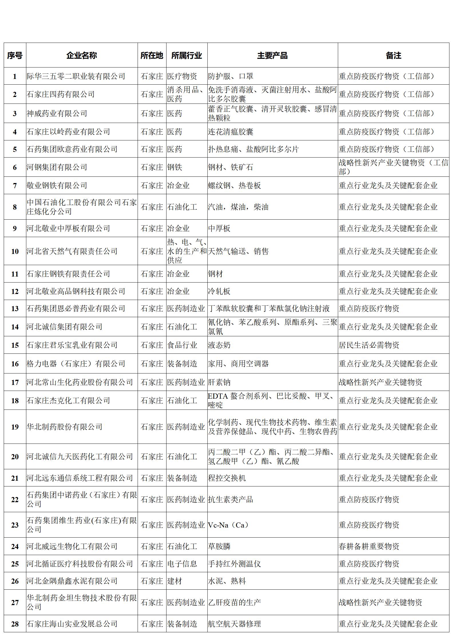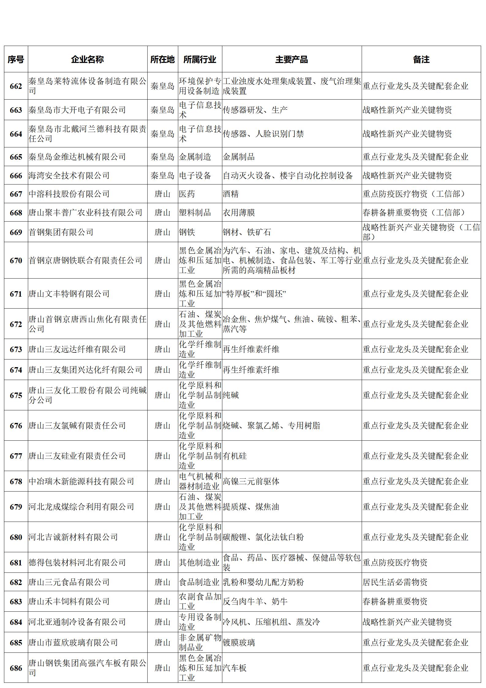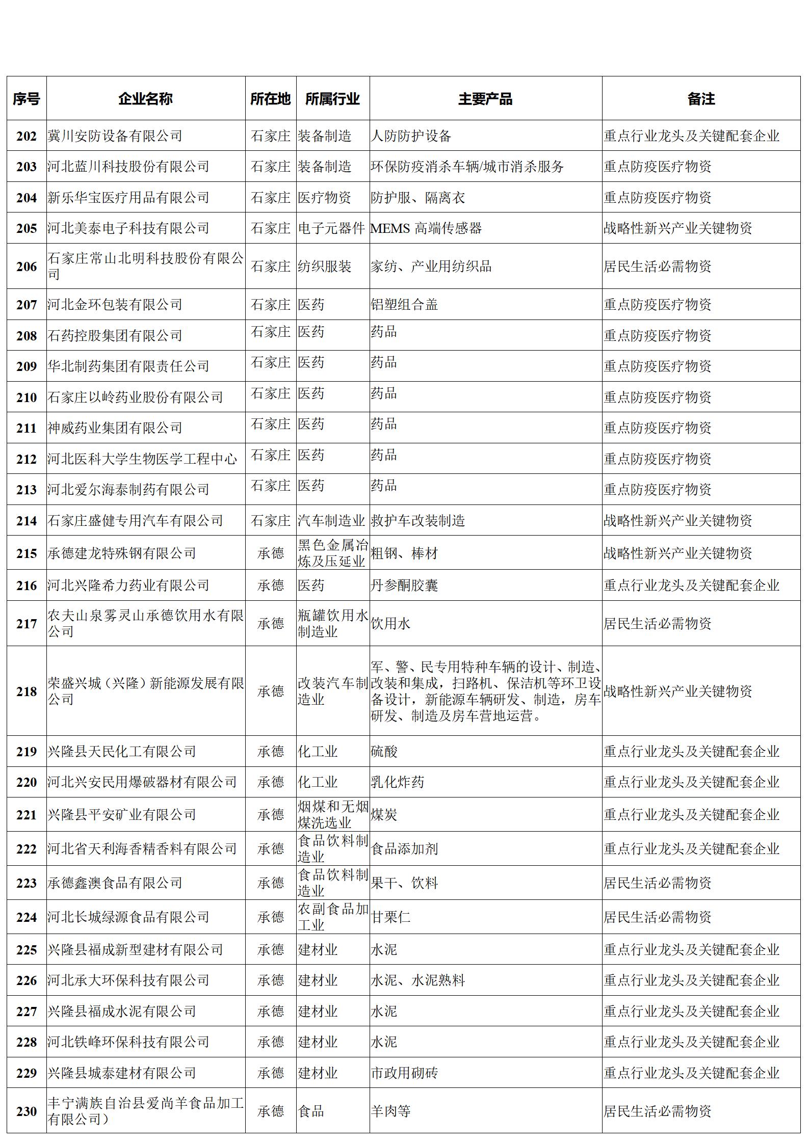 河北省重點(diǎn)產(chǎn)業(yè)鏈供應(yīng)鏈“白名單”企業(yè)