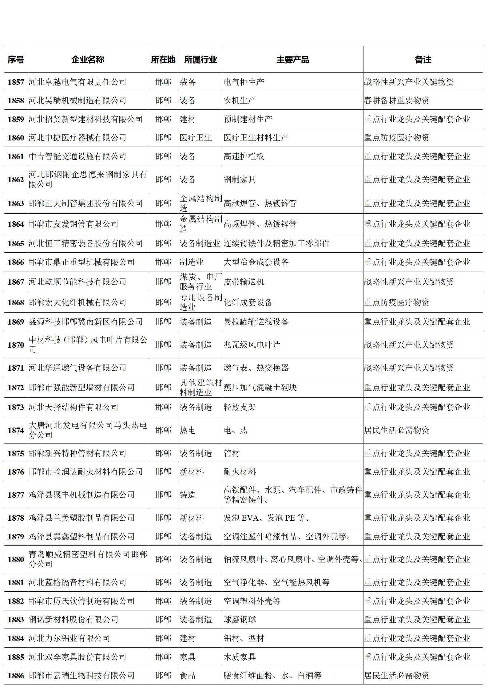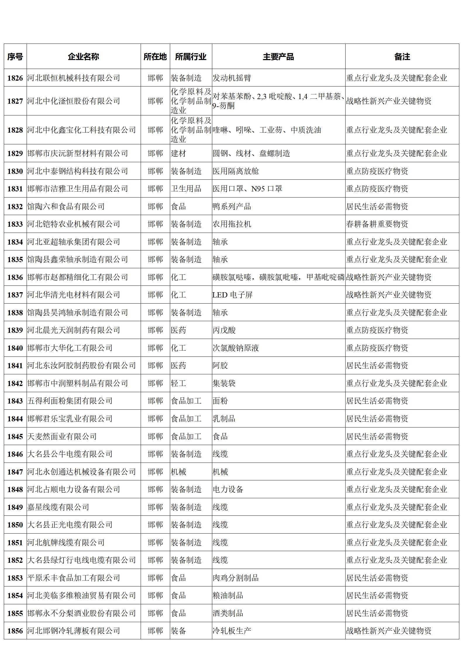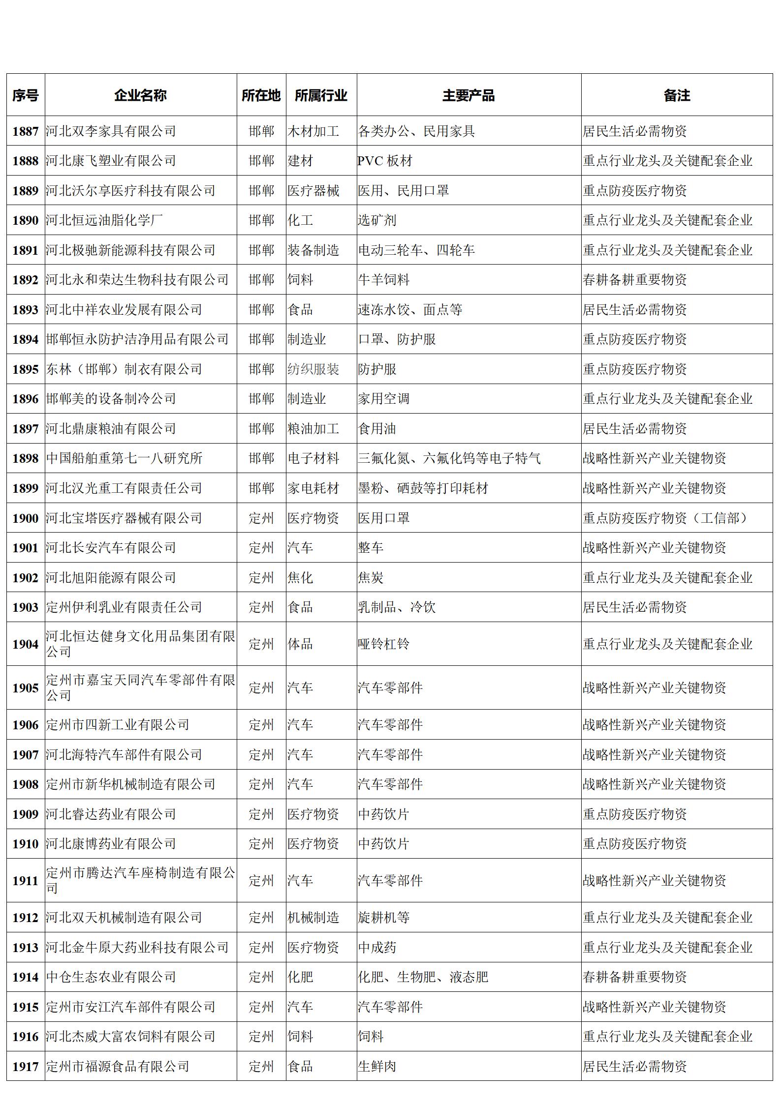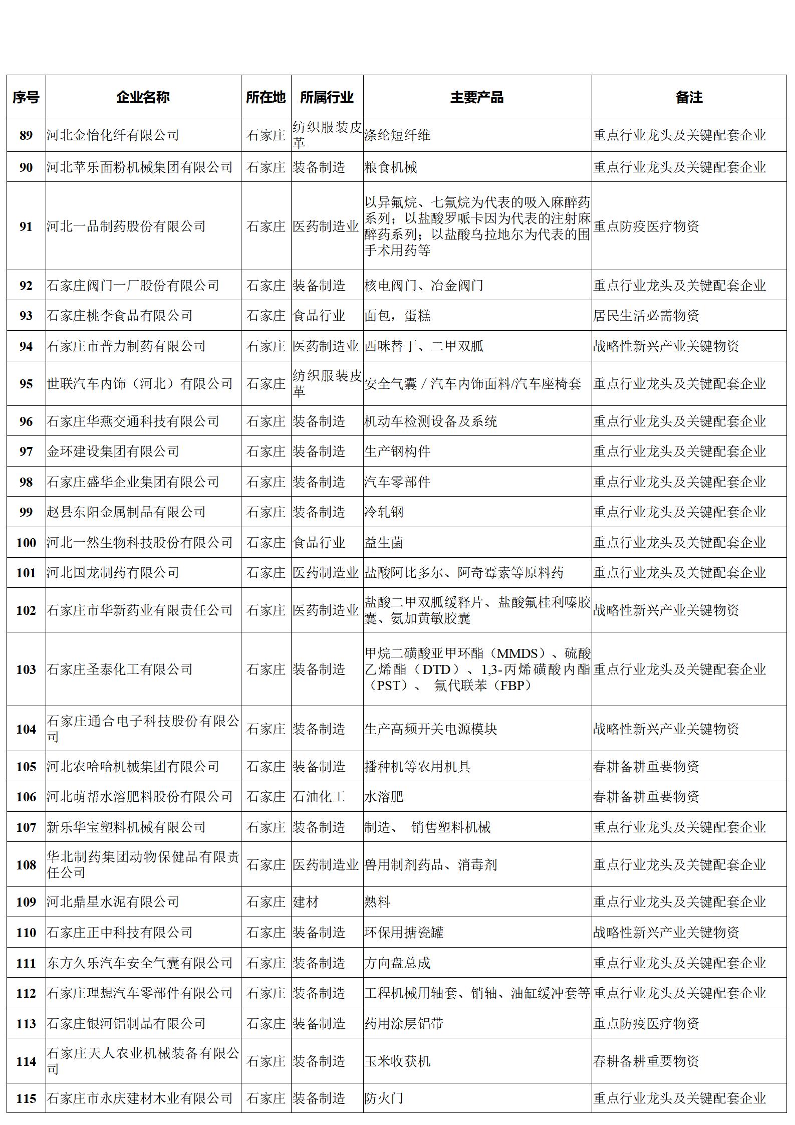河北省重點(diǎn)產(chǎn)業(yè)鏈供應(yīng)鏈“白名單”企業(yè)