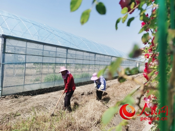 進(jìn)入5月,南通市如東縣掘港街道虹橋村虹橋農(nóng)場內(nèi),葡萄、桃子等各類果蔬長勢旺盛,道路兩側(cè)的月季花開得正艷。年過七旬的村民陳祥芝和老伴正在干著農(nóng)活。5年前,老夫妻倆的7畝耕地流轉(zhuǎn)給了大戶杜長泉。