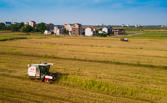 5月16日下午,金華市金東區(qū)塘雅鎮(zhèn)萬畝良田區(qū)塊里機聲隆隆,4臺聯(lián)合收割機在滾滾麥浪中穿梭,收割成熟的小麥。據(jù)介紹,收獲的小麥品種為“揚麥23”和“寧麥133”,面積1200多畝,這幾天天氣晴好,可在3天至4天時間內可收割完畢。(時寬兵)