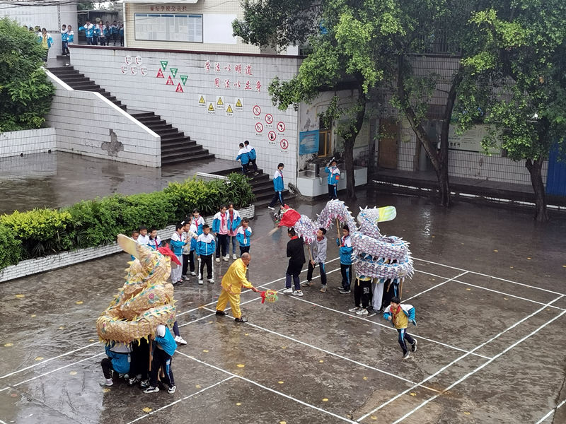 “我先是向師生傳授舞龍技藝基本動(dòng)作,然后再選擇50個(gè)娃娃組建學(xué)生舞龍隊(duì),再系統(tǒng)培訓(xùn)舞龍?!绷_德書說,從基本動(dòng)作開始,再到套路訓(xùn)練、樂器訓(xùn)練,到了期末,基本就能進(jìn)行一個(gè)完整的表演了。