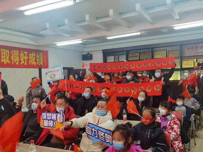 徐夢桃參加的每一場北京冬奧會比賽,她的啟蒙教練、家鄉(xiāng)人民和小運(yùn)動員們都在鞍山市軍事體育學(xué)院為她加油助威。胡婧怡攝