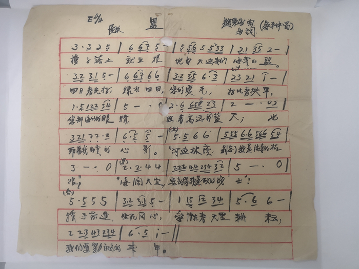趙良璋作曲、薛介民作詞的曲譜《盟》手稿。雨花臺(tái)烈士紀(jì)念館供圖