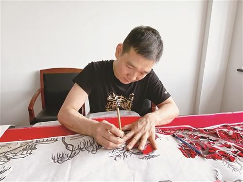 目前,他正在準(zhǔn)備“喜迎亞運(yùn)·傳承非遺”主題剪紙藝術(shù)創(chuàng)作比賽,作品已經(jīng)初步完成。