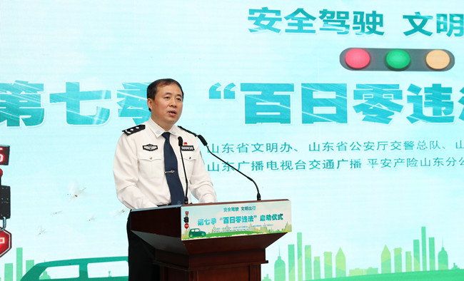 啟動儀式上,山東省文明辦副主任張同海、山東省公安廳交通管理局黨委書記、局長劉福宏、山東廣播電視臺副總編輯黃寶書、濟(jì)南市公安局交警支隊副支隊長趙洪銘、平安產(chǎn)險山東分公司黨委書記、總經(jīng)理郭強(qiáng)等共同啟動第七季百日零違法活動,并為全省出租車、網(wǎng)約車駕駛員代表、志愿者代表授旗。