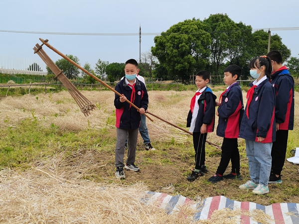 高淳區(qū)漆橋中心小學(xué)發(fā)揮地域優(yōu)勢(shì),拓寬勞動(dòng)實(shí)踐場(chǎng)所,依托街道中心村農(nóng)耕文化館開展“打菜籽”研學(xué)活動(dòng)?!安倏v梿枷時(shí),前手上提,后手下壓,梿枷的轉(zhuǎn)軸循環(huán)轉(zhuǎn)動(dòng),反復(fù)拍打使油菜脫粒?!毙M廨o導(dǎo)員趙士華正詳細(xì)介紹油菜籽的收割、分離過程。通過講解,同學(xué)們對(duì)油菜籽的采收有了初步認(rèn)識(shí)。走進(jìn)田間,同學(xué)們紛紛擼起袖子,躍躍欲試。在趙士華的耐心指導(dǎo)下,同學(xué)們慢慢找到打油菜籽的正確方法,連枷不停地拍打下去,一粒粒油菜籽從油菜莢中躍出。同學(xué)們?cè)诹私廪r(nóng)耕知識(shí)、學(xué)習(xí)農(nóng)耕技能的同時(shí),體驗(yàn)勞動(dòng)的快樂。