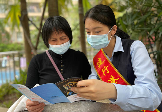 建行工作人員走進社區(qū)開展宣傳。鄧星攝