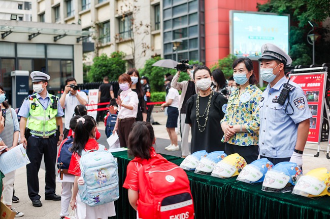“出門著急了”“忘戴了”“天熱了,戴著麻煩”“不好意思,下次一定戴好頭盔”……5月25日清晨,西安高新交警聯(lián)合高新一小共同行動(dòng),開展“一盔一帶”安全守護(hù)行動(dòng),在校門口教育、提醒騎行送孩子上學(xué)而未給孩子佩戴頭盔的家長(zhǎng)重視交通出行安全。活動(dòng)現(xiàn)場(chǎng),學(xué)校家委會(huì)還組織為沒有戴頭盔的孩子贈(zèng)送了頭盔。當(dāng)天,高新區(qū)30余所學(xué)校安全負(fù)責(zé)人全程觀摩了此次活動(dòng)。