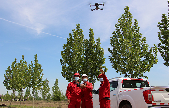 華北油田儲(chǔ)氣庫員工利用無人機(jī)巡查管線。 賈艷娜攝