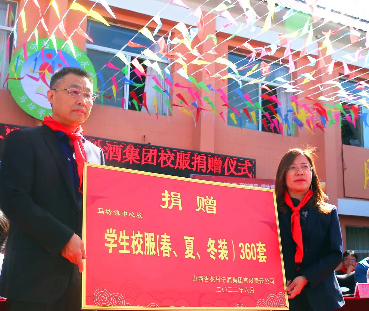 6月1日,呂梁市方山縣馬坊鎮(zhèn)中心校舉行慶“六一”活動(dòng)暨汾酒集團(tuán)校服捐贈(zèng)儀式。當(dāng)天,汾酒集團(tuán)為該校捐贈(zèng)了價(jià)值11.6萬元的夏、秋、冬校服360套和360本新華字典。