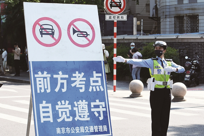 “今年考生家長大多選擇地鐵、公交等公共交通工具到達(dá)考點,周邊居民和在附近上班的人員也都能理解配合,高考現(xiàn)場環(huán)境一年比一年好?!蹦暇┙痪淮箨爤?zhí)勤二中隊中隊長錢臣表示??键c現(xiàn)場,交警也對非機動車駕駛?cè)藛T進(jìn)行友情提醒,請他們不要按喇叭。在南京市第一中學(xué)考點,南京交警三大隊副大隊長桂子振告訴記者,“下午1點,我們就在考點周邊路口安排3名民警巡邏?!痹诟骺键c周邊道路,交警均擺放了疏導(dǎo)車輛的交通標(biāo)志,并實時為考生提供幫助。