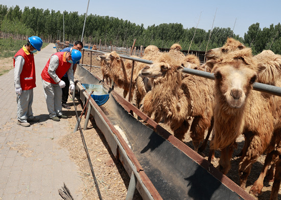 5月31日,國家電網(wǎng)冀北電力唐山“鋼鐵之魂”共產(chǎn)黨員服務隊隊員來到駱駝專業(yè)合作社檢查用電設備。 周宇翔攝