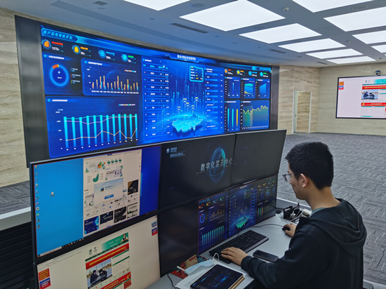 國(guó)網(wǎng)冀北電力工作人員對(duì)唐山供電公司小微企業(yè)信用評(píng)價(jià)情況進(jìn)行可視化展示。王暢攝