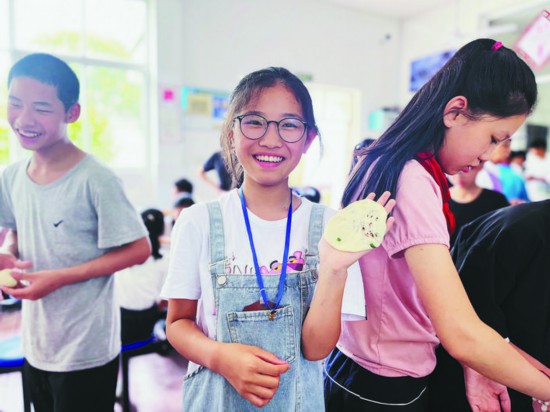 為什么會讓學生學做燒餅呢?校長王國寶這樣解釋:“縉云燒餅的制作技藝是國家級非物質文化遺產(chǎn),讓學生傳承這項技藝,也能讓他們感受縉云人記憶深處的味道。六年級的同學即將畢業(yè),以后他們會離開縉云展翅高飛,真心希望他們能記住縉云燒餅這個回家的路標。”