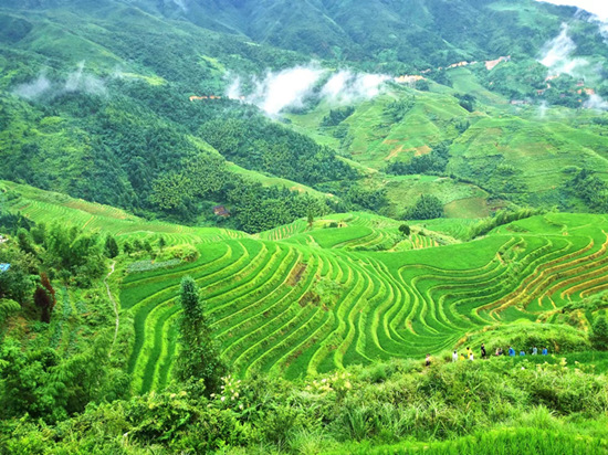 于是,遷西縣開(kāi)始大力在山上做“文章”。在坡度25度以下的荒坡,沿等高線(xiàn)開(kāi)挖1米深、2米寬的環(huán)山水平梯田,在“七山二水半分田、半分道路和莊園”的地貌上圍山造林,隨山就勢(shì),環(huán)山而建,每條長(zhǎng)達(dá)幾百米,且整個(gè)山體整體開(kāi)發(fā),因此這項(xiàng)工程被稱(chēng)為“圍山轉(zhuǎn)”。