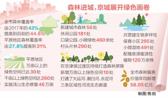 落實黨中央、國務(wù)院批復(fù)的城市總規(guī),2017年初,本市啟動新一輪百萬畝造林綠化工程。截至目前,五年造林綠化面積已達100.8萬畝,本月底前,將圓滿超額完成新一輪百萬畝造林任務(wù)。