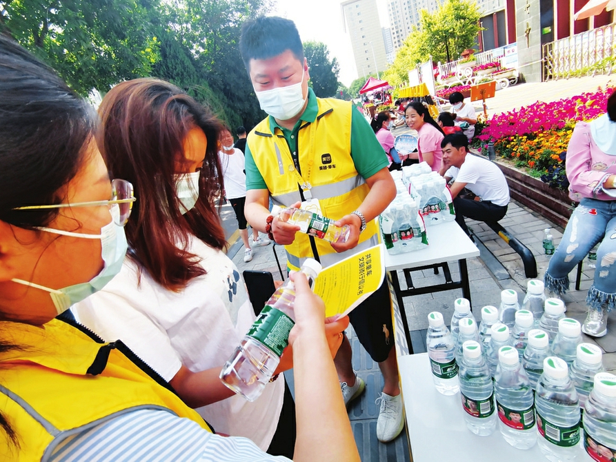 6月20日,太原市交通運(yùn)輸綜合行政執(zhí)法隊在太原二十七中考點(diǎn)規(guī)范周邊環(huán)境,為考生及家長提供免費(fèi)騎行服務(wù),并提供礦泉水和休息處。(圖由孫榮祥 段賀鵬攝)