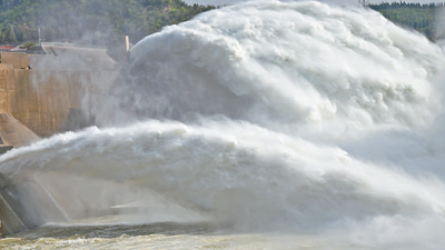 圖為29日,黃河小浪底水庫出水口。據(jù)介紹,2022年汛前黃河調(diào)水調(diào)沙于19日啟動,預(yù)計歷時20天左右。