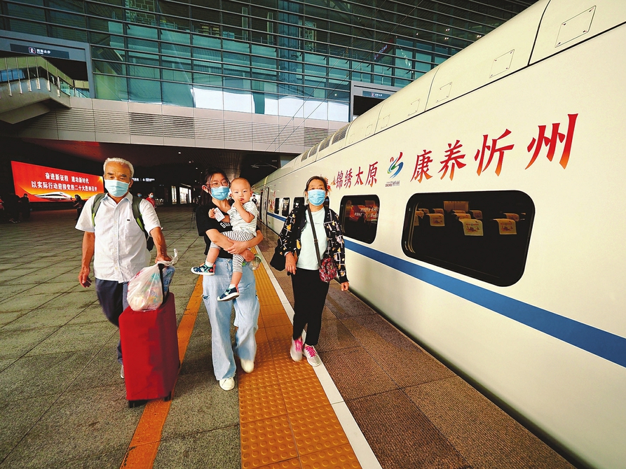 服務(wù)于“太忻號”的乘務(wù)員深感責(zé)任在肩?!拔覀兝密嚿碣N、海報等對車體進行立體式包裝——雙塔寺、五臺山大白塔、忻州古城……動車組似一道絢麗的彩虹把兩地的山山水水串聯(lián)起來,實現(xiàn)‘錦繡太原、康養(yǎng)忻州’旅游元素的共享。我們還為旅客提供忻州美食,做好服務(wù)員、宣傳員、導(dǎo)游員,讓旅客了解忻州文化、山西文化,打響‘太忻號’品牌,助推旅游業(yè)發(fā)展?!薄疤锰枴绷熊囬L王芳如是說。