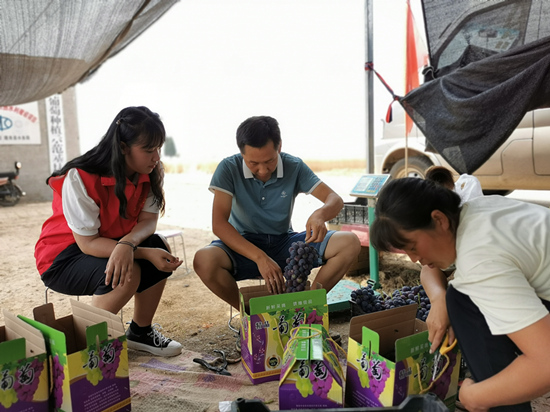 隆堯縣東良鎮(zhèn)安中村,利用“鄉(xiāng)村振興貸”種植的大棚葡萄喜獲豐收,種植戶正在包裝。 任學麗攝