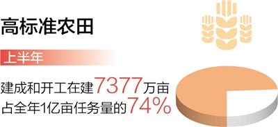 種子耕地農機基礎進一步夯實,農業(yè)綜合生產能力不斷提升。種業(yè)振興行動扎實推進。資源普查任務進度過半,已收集農作物種質資源11萬份、畜禽遺傳材料6萬份、水產遺傳材料5萬份。開展農業(yè)關鍵核心技術攻關,首次審定一批綠色、專用和耐鹽堿小麥品種。高標準農田建設加快推進。上半年建成和開工在建高標準農田7377萬畝,占全年1億畝任務量的74%。農機裝備條件持續(xù)改善。推進機收減損,小麥機收損失率控制在2%以內。