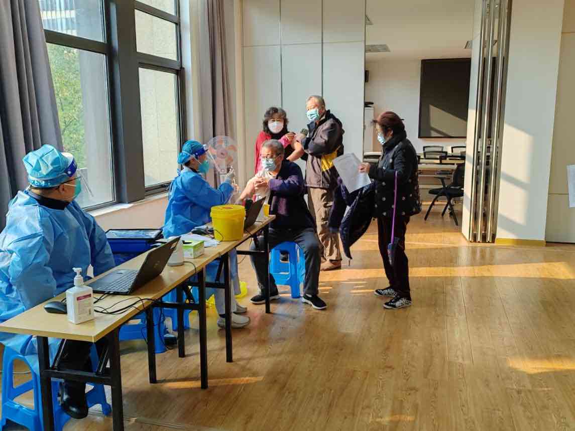 12月12日起,香溢居民區(qū)打疫苗老人的數(shù)量明顯上升,最多的一天接種了30多針,整個北蔡鎮(zhèn)每天能接種300余針疫苗,比6、7月份時翻了幾十倍?!?5歲的、100歲的都來了,很多老人獨居,我們就在家屬委托下,由居委會工作人員陪同接種,行動不便的,可到居委進行上門接種登記”,徐慶偉說。